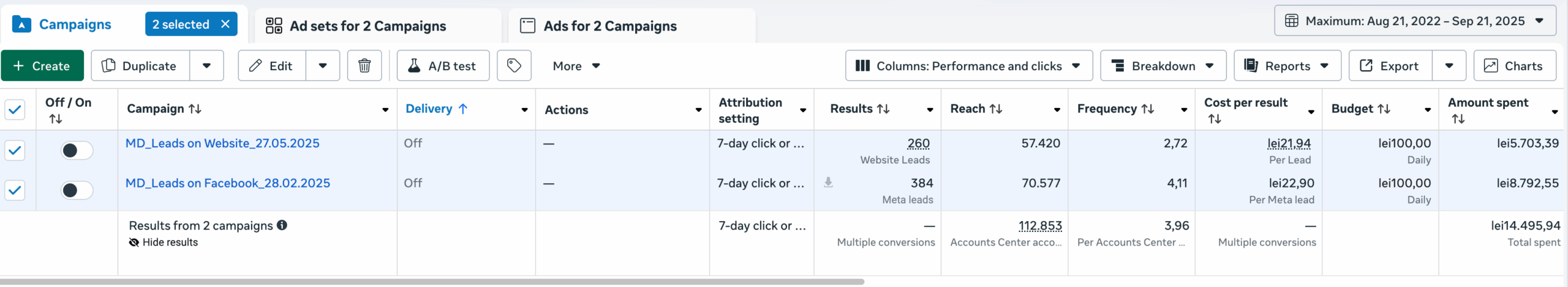 Rezultatul a fost unul spectaculos și pentru ei, și pentru noi. După ce am generat peste 600 de lead-uri la un cost de 22.5 lei / lead a fost nevoie sa oprim campania deoarece aveau prea multe si nu reuseau sa le proceseze la timp.